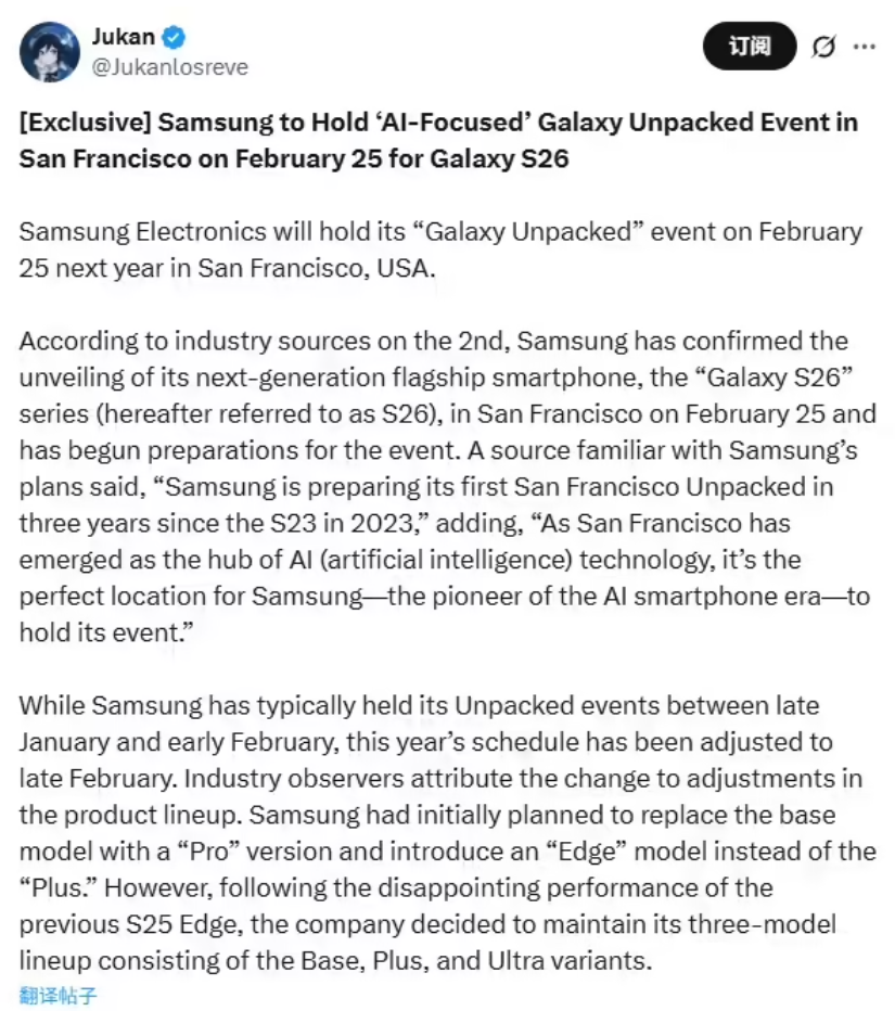 关键笔者发现除了发布时间很清晰之外,Galaxy S26系列的产品规划也经历了显著波动。