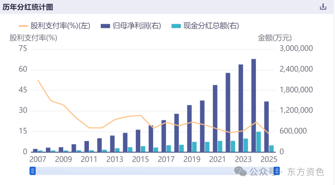 今年是宁波银行首次进行中期分红,分红比例为13.41%。根据同花顺的统计数据,对比该行自2007年上市至今的年度分红比例,今年中期的分红比例是上市以来的最低值。近几年中除了去年分红比例超20%,其余均为15%左右。